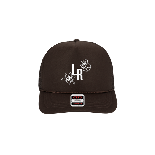 Flower Trucker Hat in brown.