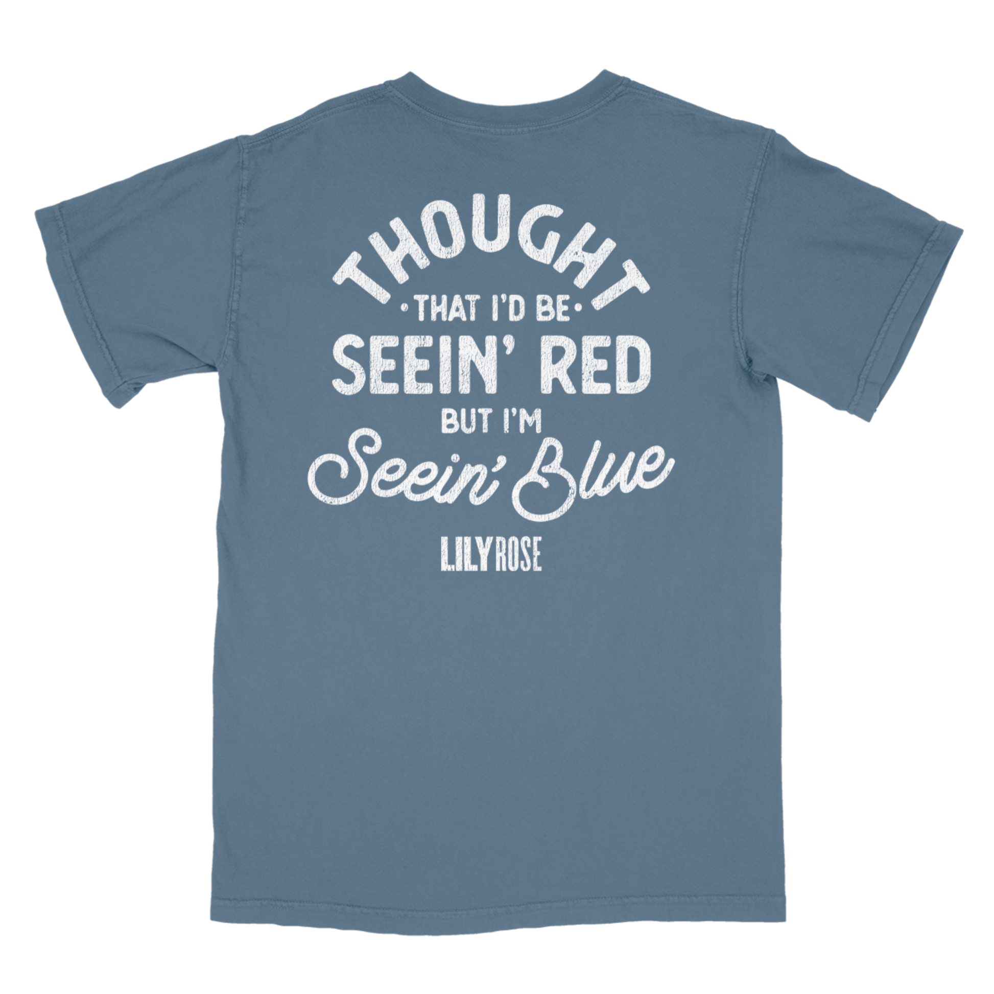 Lily Rose Seein' Blue Tee in indigo with front and back print.